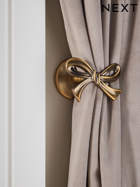 Antique Brass Set of 2 Bow Curtain Holdbacks