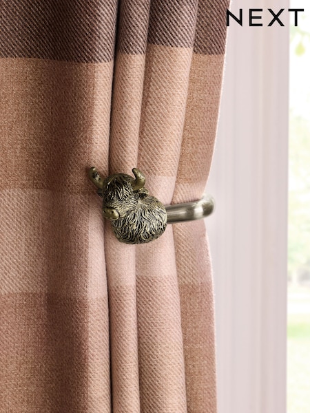 Set of 2 Antique Brass Hamish The Highland Cow Curtain Holdbacks