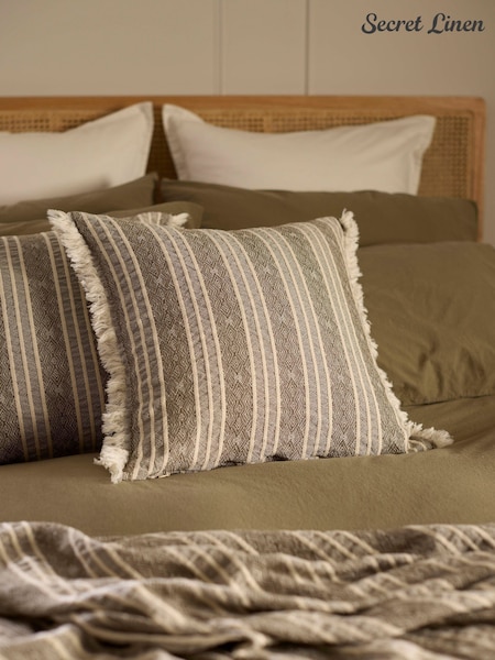 Secret Linen Store Khaki Arlo Stripe Cushion Cover