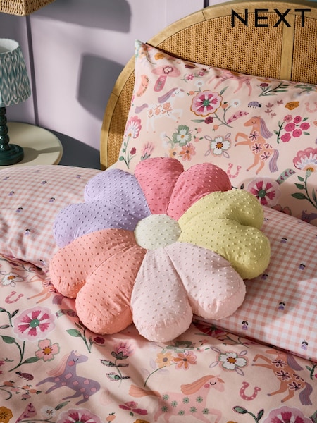 Pink Textured Daisy 100% Cotton Cushion