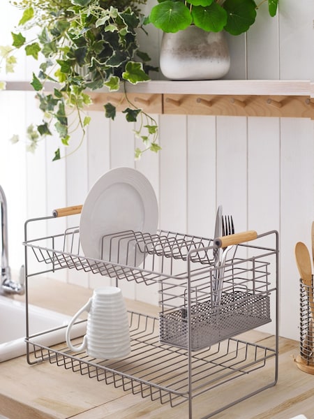 Grey Malvern 2 Tier Dish Drainer and Cutlery Holder
