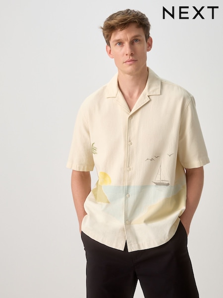 White/Green Relaxed Fit Floral Tile Print Knitted Shirt