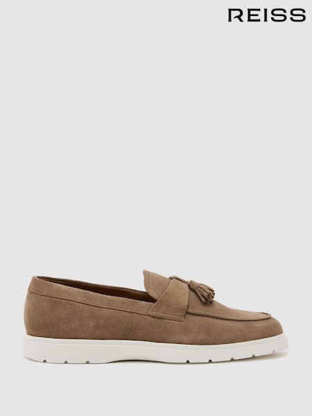 Reiss Dark Taupe Brown Jimmy Suede Tassel Loafers