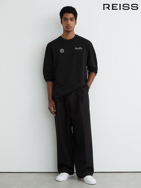 Reiss Black Suave Cotton Motif Long-Sleeve Relaxed T-Shirt