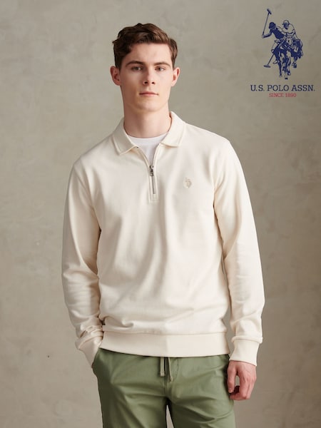 U.S. Polo Assn White Loopback Zip Polo Sweatshirt