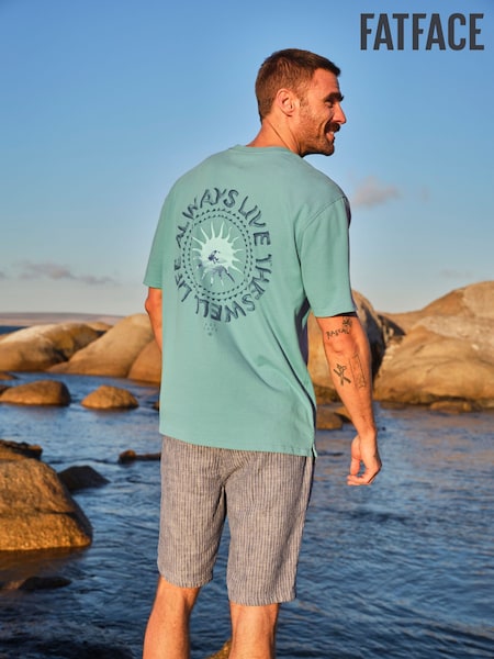 FatFace Light Teal Life Is Swell Relaxed Graphic Tshirt