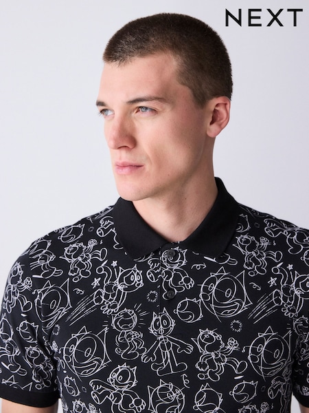 Neutral Regular Fit Fairisle Stripe Long Sleeve Knit Polo Shirt with Wool