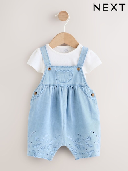 Denim Blue Broiderie Dungaree and Bodysuit Baby 2 Piece Set (0mths-3yrs)