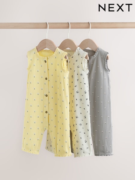 Monochrome Floral Rib Wide Leg Jersey Baby Rompers 3 Pack