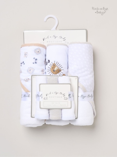 Rock-A-Bye Baby Boutique White Hooded Towels and Wash Cloth Set 3 Pack