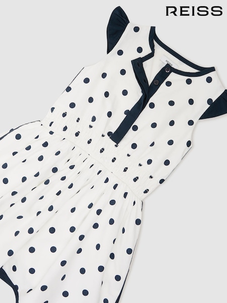Reiss Navy/White Clarence 9-13 yrs Cotton Polka-Dot Waisted Dress