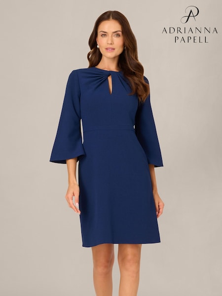 Adrianna Papell Blue Knit Crepe Tiered Sleeve Dress
