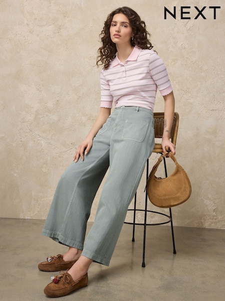 Sage Green Lightweight Denim Patch Pocket Cropped Jeans