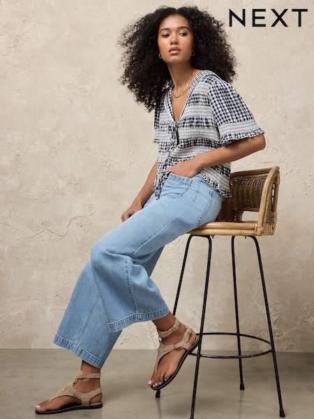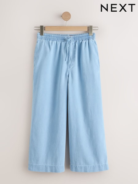 Light Blue Pull on Lightweight Denim Wide Leg Crop Jeans