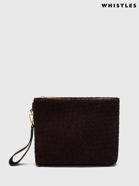 Whistles Brown Avah Woven Suede Zip Clutch