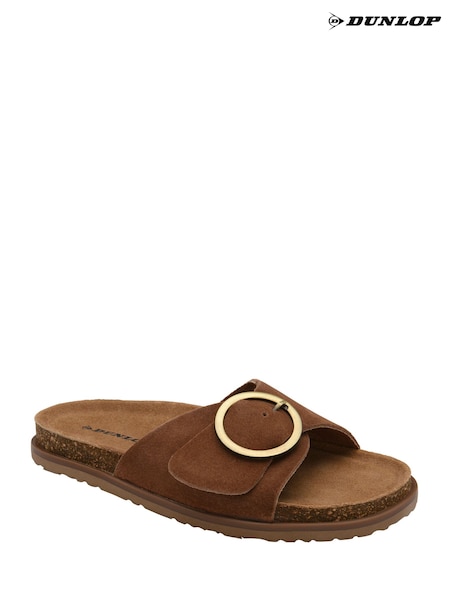 Dunlop Brown Twin Strap T-Bar Buckle Sandals