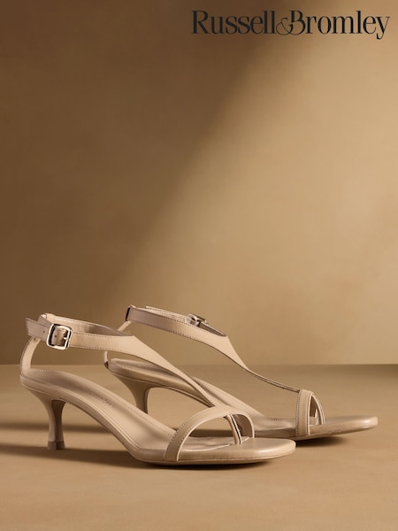 Russell & Bromley Neutral Edgebold T-Bar Heeled Sandals