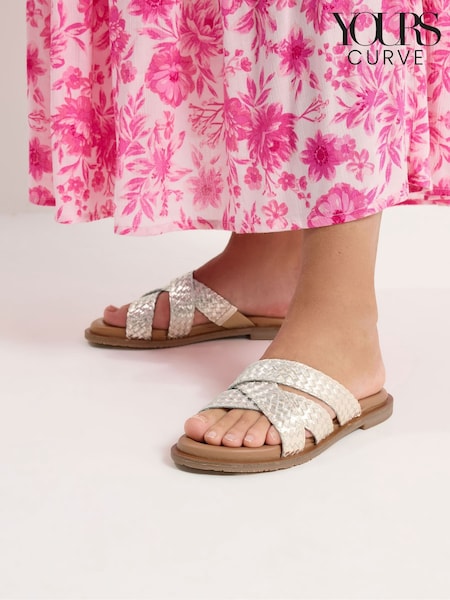Yours Curve Gold Wide Fit Cross Strap Footbed Sandals