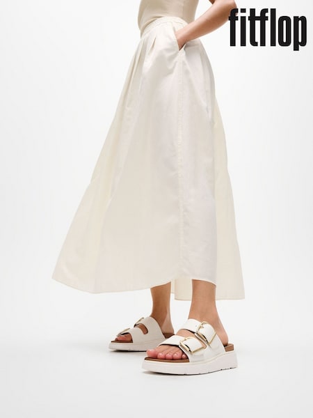 FitFlop White Gen-FF Buckle Two Bar Leather Slides