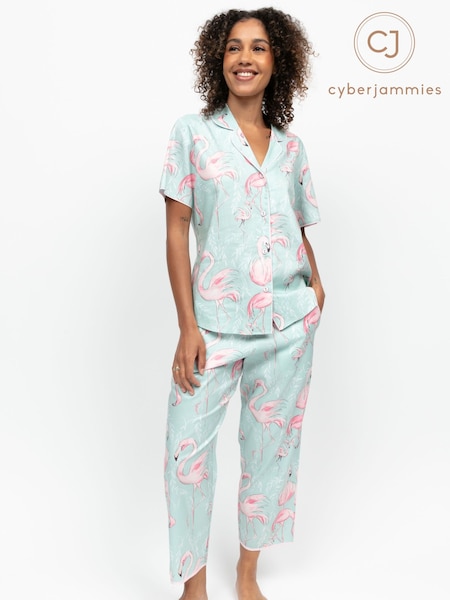 Cyberjammies Green Flamingo Print Short Sleeve Pyjamas Set