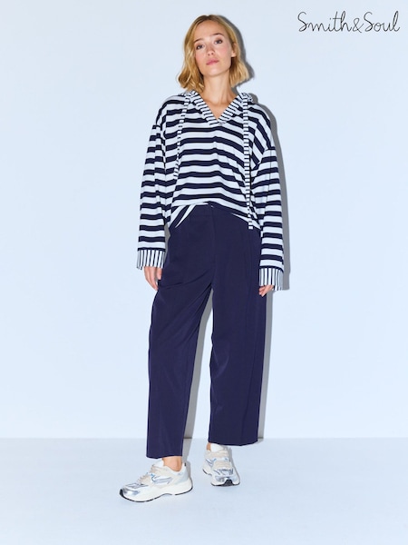 Smith & Soul Blue Boxy Striped Crop Hoodie