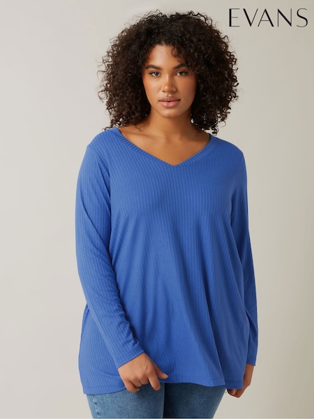 Evans Blue Long Sleeve Modal Rich Ribbed T-Shirt
