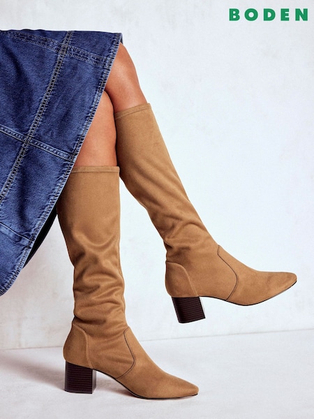Boden Brown Heeled Stretch Knee Boots