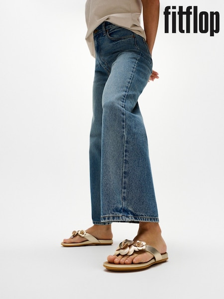 FitFlop Gold Gracie Flower Leather Flip Flops