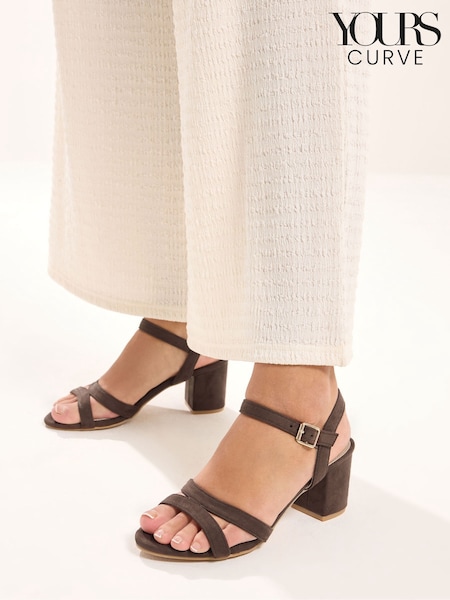 Yours Curve Brown Wide Fit Faux Suede Mid Block Heel Sandals
