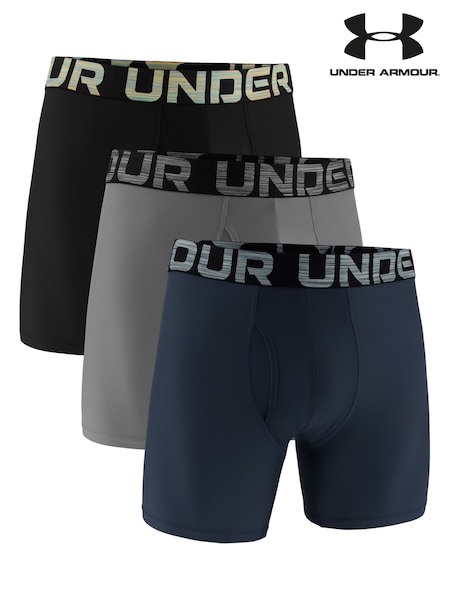 Under Armour Black Grey 100% Cotton Performance Tech 6in Boxers 3 Pack