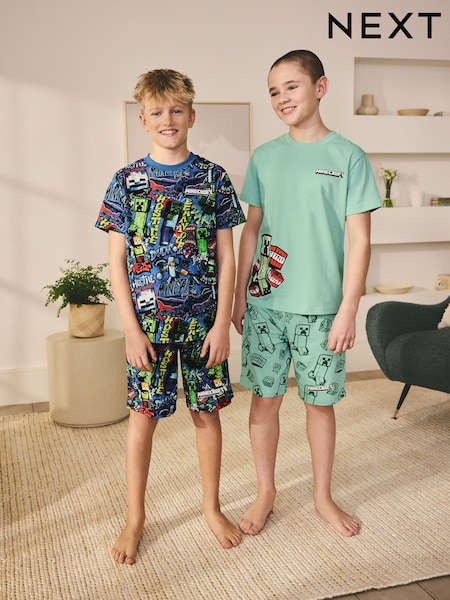 Green/Blue Minecraft Short Pyjamas 2 Pack (5-14yrs)